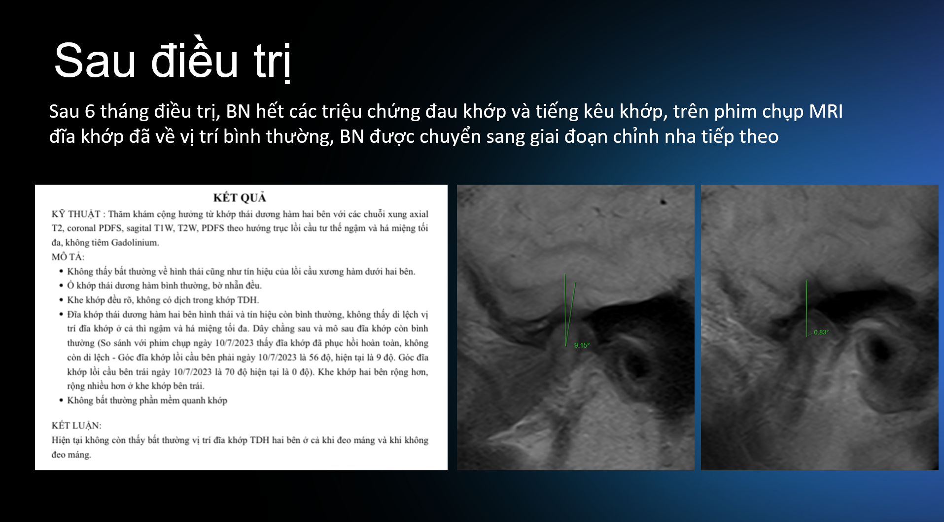- Chỉnh nha: Phù hợp với những nguyên nhân do sai lệch khớp cắn nhiều, hoặc để tái lập khớp cắn ổn định sau giai đoạn điều trị bảo tồn, máng nhai.